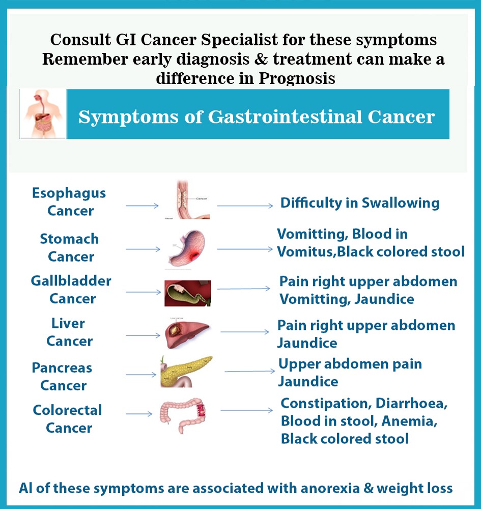 Know the Symptoms of Gastrointestinal Cancer by Best Oncologist Dr Amit Jain. These symptoms aid in early diagnosis of cancer. Remember early treatment of GI Cancer patients have got good survival rate